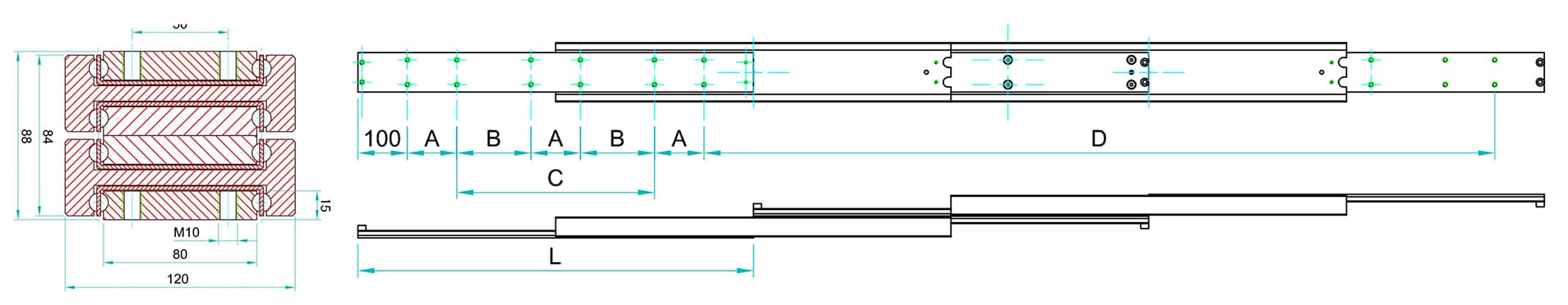 | Montaj Uzunluğu: L | Uzatma Uzunluğu: D | Taşıma Kapasitesi: KG | “A” | “B” | “C” |