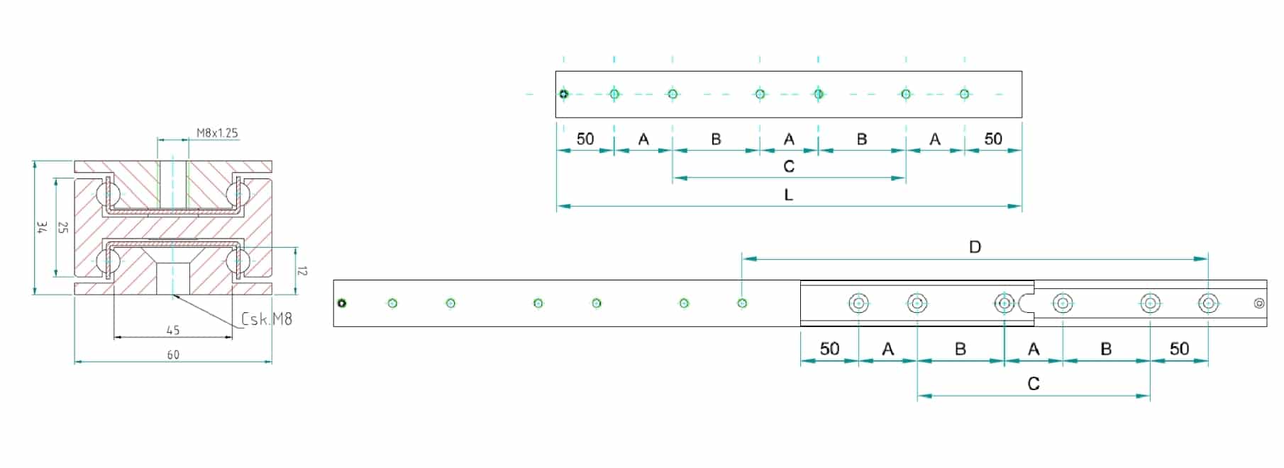 KDTS-60, soğuk çekilmiş C45E+C çelik profillerden üretilmiş olup, kafesli bilyalı rulman sistemiyle donatılmıştır.
