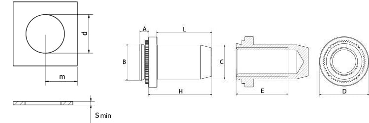 | Diş Ölçüsü | B max | D ±0,25 | A max | H ±0,25 | C max | E min | L max | S min | d +0,08/-0 | m | B | BS |