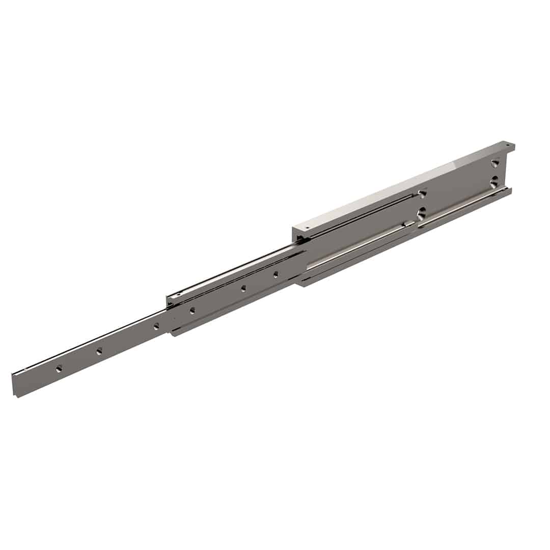 Bu, çok çeşitli uygulamalar için uygun, kompakt, aşırı hizmet tipi, tam açılımlı bir teleskopik kızaktır (140-435kg/çift). 650 mm’de 1 çift, 435Kg tam uzatma yük kapasitesine sahiptir.